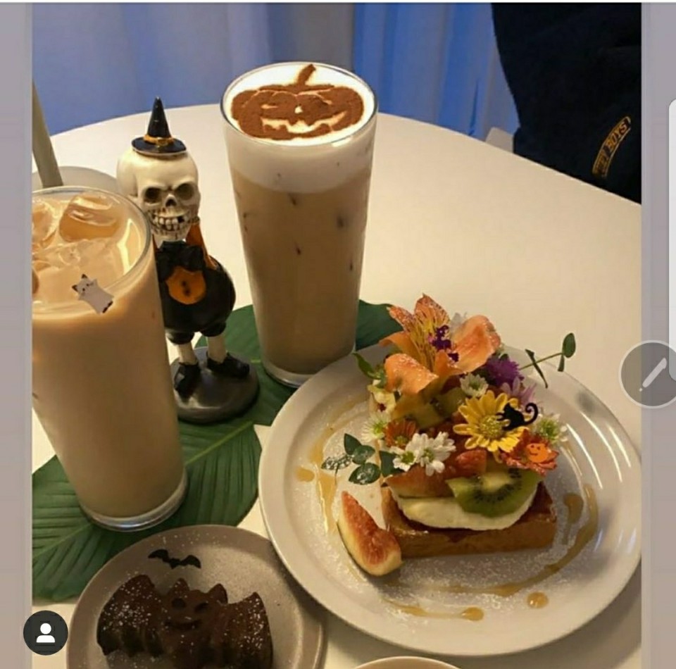 It has been forever and a day to update this blog, since I haven’t been as motivated as I could have been. But, this time of year is when I feel inspired. Last year, I decided to embark on my first seasonal cafรฉ quest since living in Korea, and that started with finding cafes that offer Halloween related treats and drinks. I didn’t ultimately compile a blog post about those cafes, although I did post about them on my Instagram account : instagram.com/rebeccainkorea . However, I did manage to put my post up for Christmas .
