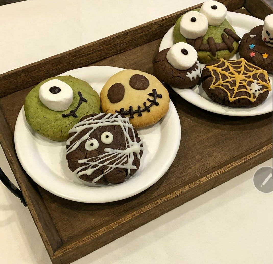 Cafe Bonnie is a delightful cafe that’s signature sweet treat is a cookie. Many different kinds of cookies can be purchased including Lotus Biscoff cookies, fruit ring cereal cookies, marshmallow cookies and oreo cookies. For this Halloween season, one eyed monsters, two eyed monsters, mummies, ghosts, skeletons, and spider webs (and spider) cookies are being baked. You can even take a baking class! It would be best to send a message by Instagram DM in advance to ensure the cookie you want would be available.