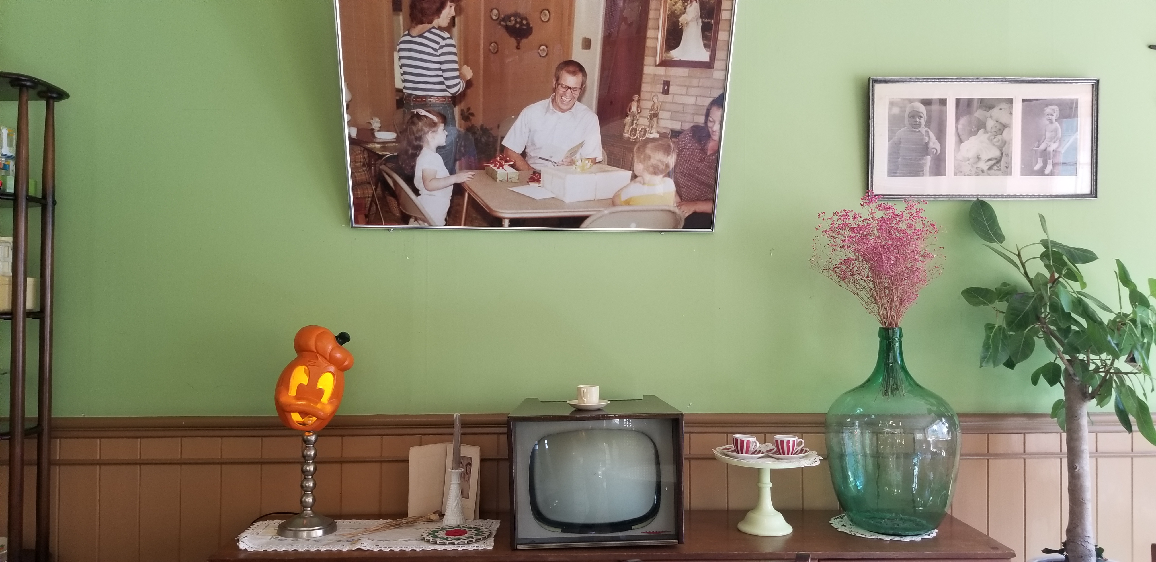 This is one of my favorite cafes in Korea. It’s decorated with a 1950s-1970’s? theme and has many vintage pictures of American families and retro items. It’s in a large house, is two floors and has a huge porch and front lawn. Their cake is always delicious as well as their milkshakes and banana splits. ๐ They regularly make holiday themed sweets. This year their Halloween cake options include a witch chocolate cupcake (๋จธ๋