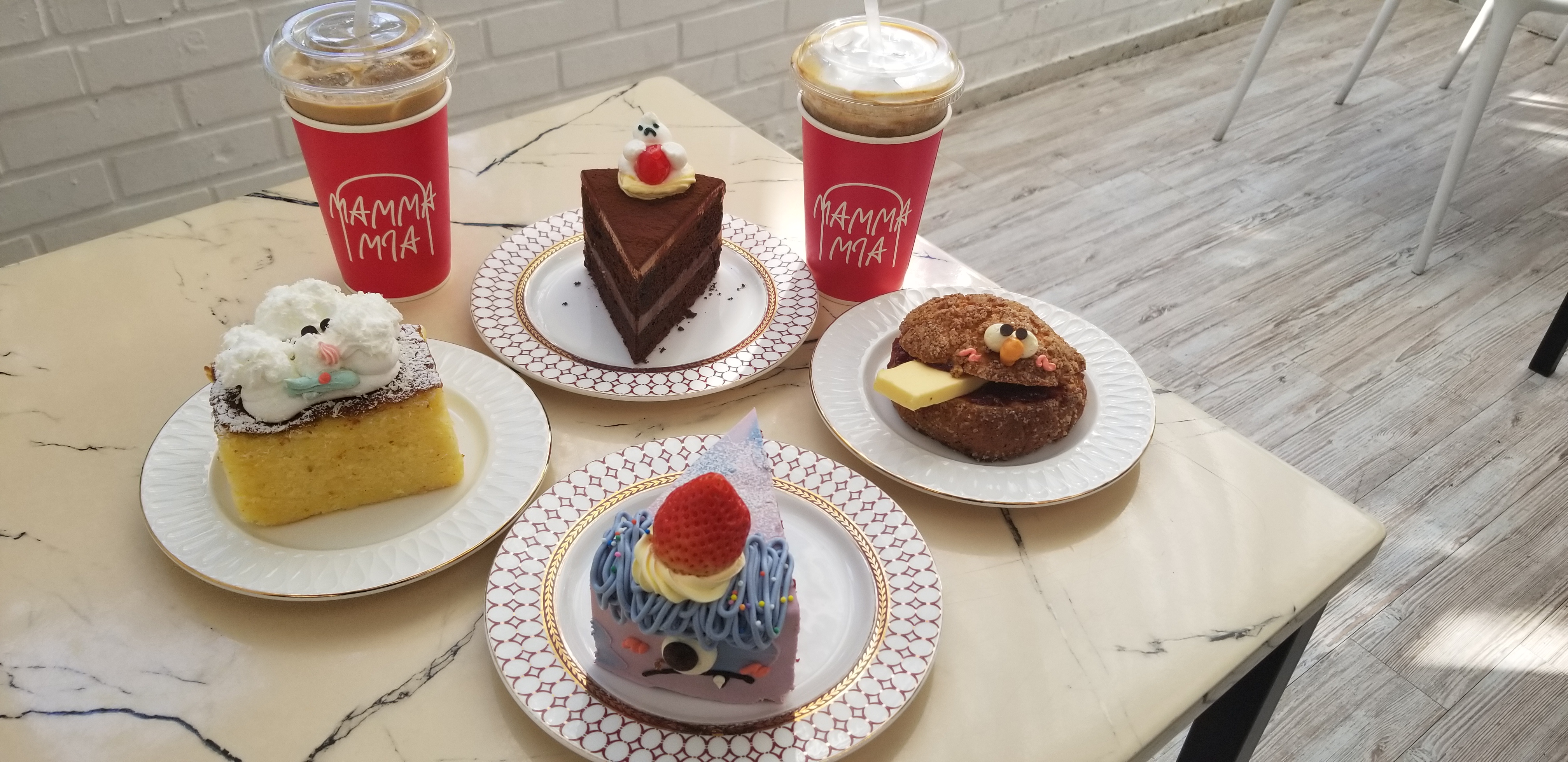 Sweet Hertz contains a variety of cakes, each with designs that cover each individual slice. Every slice is ensured to have a cute character on it. For Halloween, witch puppy with broom cakes and ghost cakes are available.